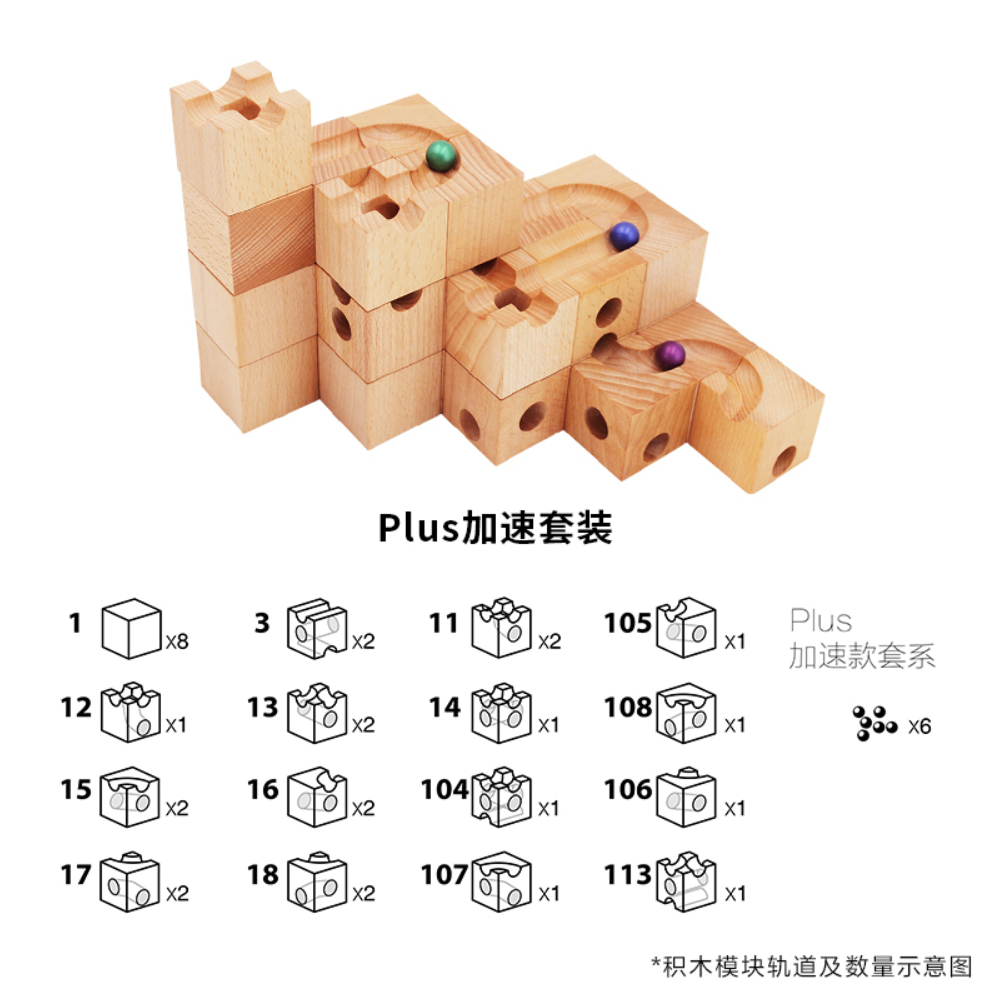加速款轨道积木套装是一款创新且极具挑战性的建筑玩具,共包含30块精选榉木积木,设计用于引入动力学和速度控制的概念,从而为儿童提供一个富有教育意义的互动游戏体验。