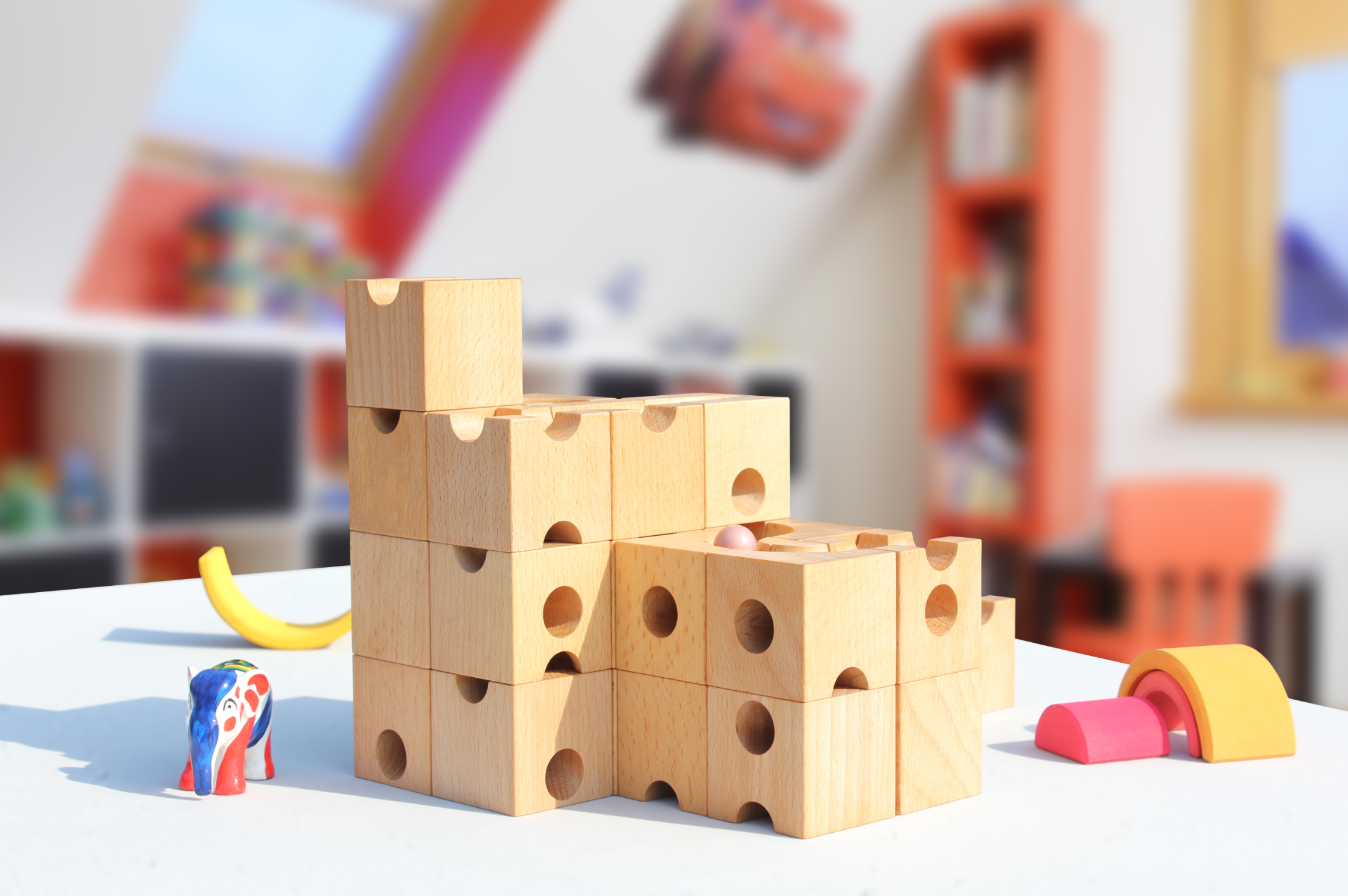 这些榉木积木块经过精心加工,保证了其耐用性和安全性。表面光滑,边缘经过仔细打磨,适合频繁使用而不损坏。积木块的多样形状和尺寸使得构建复杂的轨道和结构成为可能,激发使用者的空间想象力和创造力。
